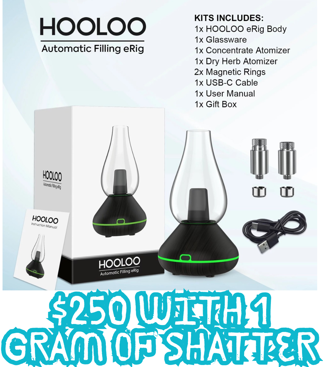 Introducing the Hooloo 3-in-1 Vaporizer—a revolutionary automatic filling eRig complete with a built-in Bluetooth speaker, compatible with 510 threads for concentrates, herbs, and CBD oil. With three voltage settings and an LED indicator, enjoy customizable vaping experiences, all while benefiting from its 5-minute idle auto-shutoff feature. Crafted from durable materials including glass, plastic, and metals, and powered by a robust 1000mAh battery, this vaporizer guarantees longevity and reliability. Equipped with replaceable quartz and ceramic coils for wax and dry herb respectively, it offers versatility in usage. Available in sleek black, white, and wood finishes, it boasts temperature and power control for optimal performance. With its water bong filter function and a temperature range of 50°C to 350°C (122°F to 650°F), indulge in smooth, flavorful vapor every time. Featuring convenient Type-C charging, the package includes the Hooloo E-Rig body, glassware, concentrate atomizer, magnetic rings, USB-C cable, user manual, and a stylish gift box. Elevate your vaping experience with the Hooloo 3-in-1 Vaporizer—where innovation meets satisfaction.